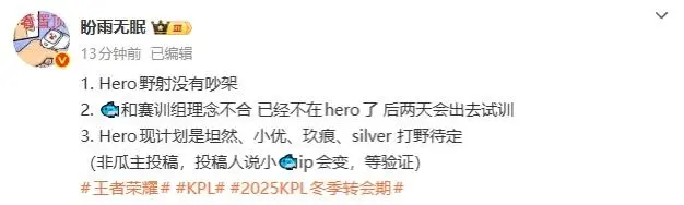 瓜主爆料:小俞和Hero賽訓組理念不合,已經(jīng)斷開(kāi)連接