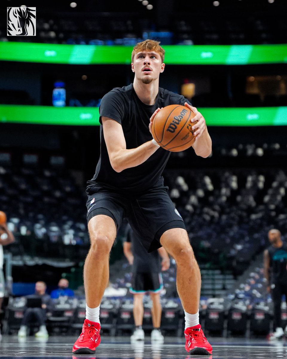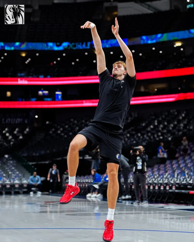 賽前,板獨獨行俠社媒曬出球員庫珀-弗拉格的行俠賽前熱身瞬間。