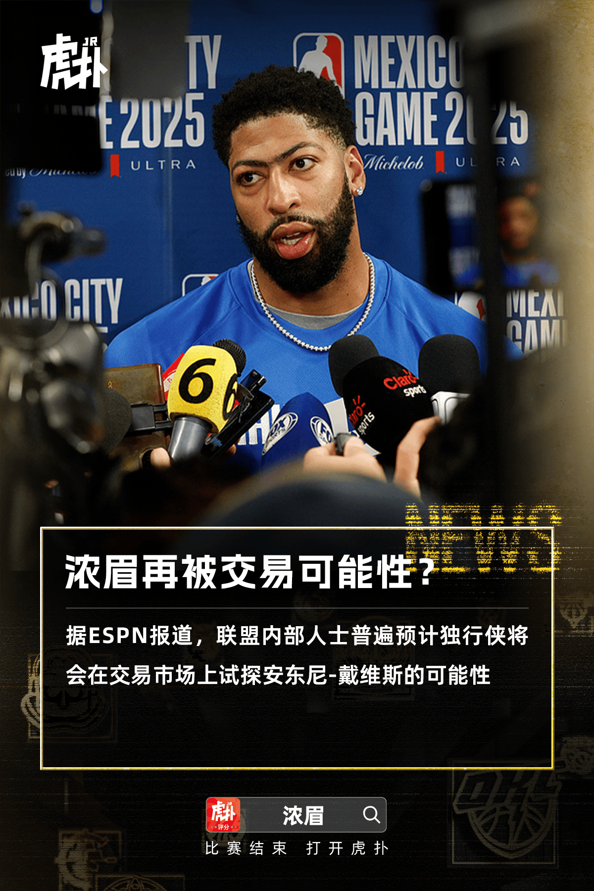 虎撲11月12日訊 據ESPN報道,聯(lián)盟內部人士普遍預計獨行俠將會(huì )在交易市場(chǎng)上試探安東尼-戴維斯的板E部人可能性。