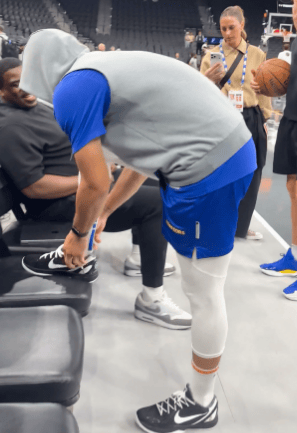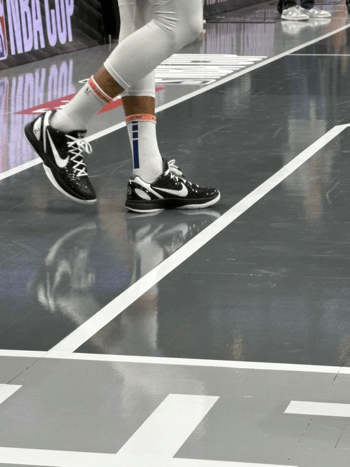 [流言板]庫里今日賽前登場(chǎng)熱身,腳穿科比6gigi黑白配色球鞋