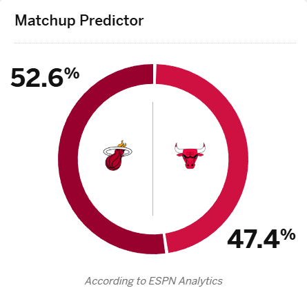 [流言板]ESPN預測明日熱火vs公牛比賽:熱火勝率52.6%稍占上風(fēng)