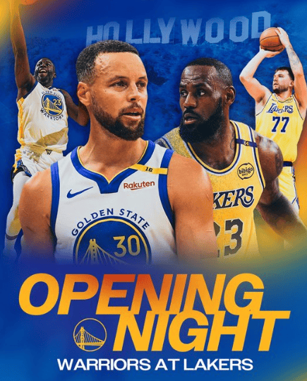 今日,勇士社媒分享25-26賽季的將新揭幕戰勇士客場(chǎng)對陣湖人的賽事海報,并配文: