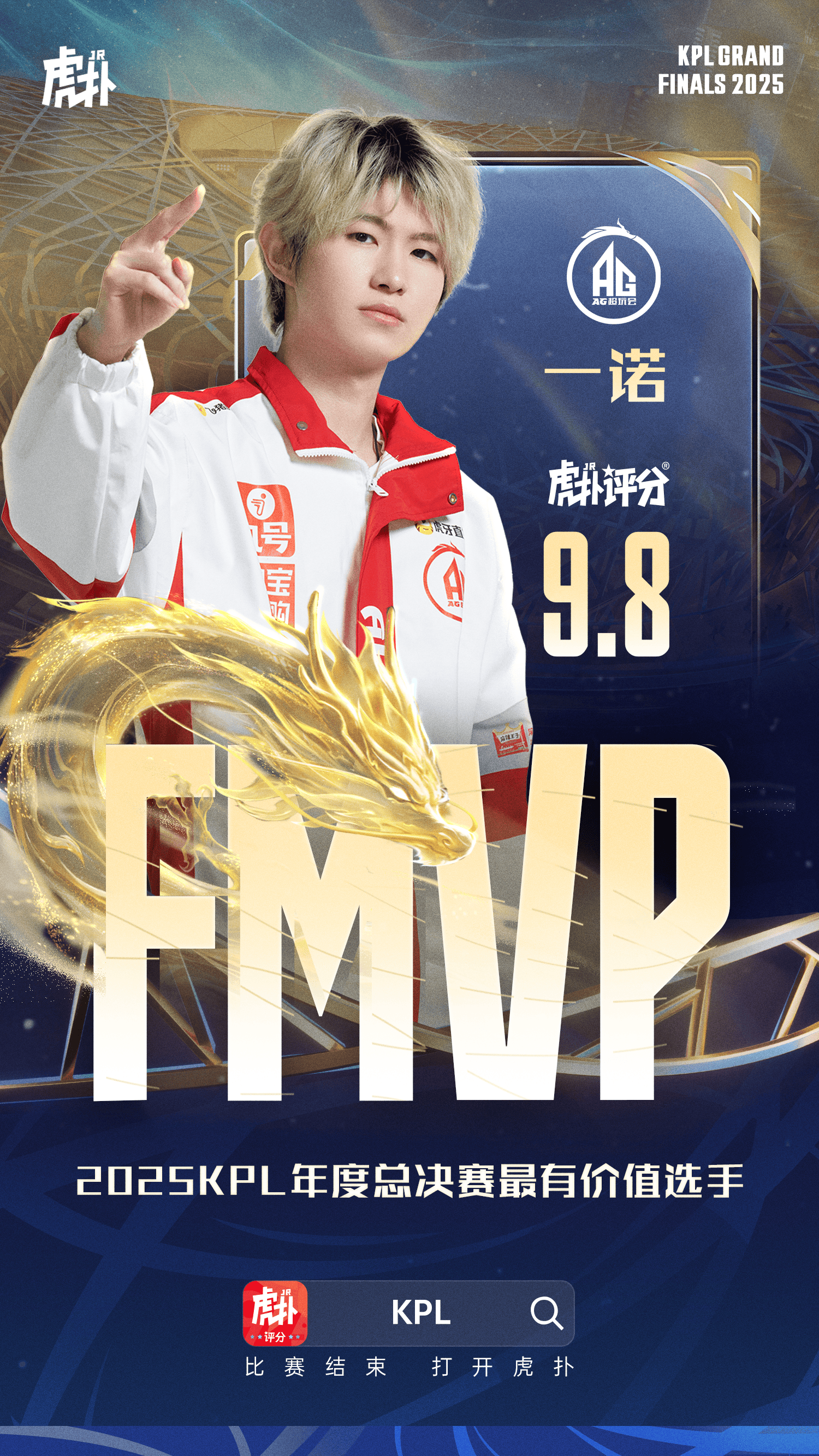 虎撲11月08日訊 恭喜成都AG超玩會(huì ).一諾榮膺2025KPL年總總決賽FMVP!