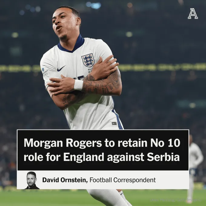 托馬斯-圖赫爾計劃為周四英格蘭對陣塞爾維亞的對塞擔任世界杯預選賽倒數第二場(chǎng)比賽排出強陣,摩根-羅杰斯將繼續出任10號位。爾維厄姆