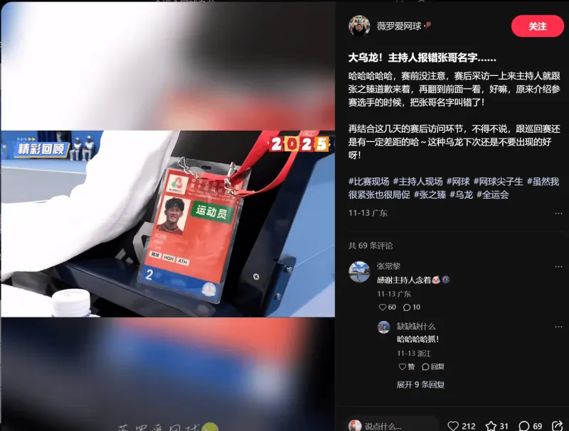 網(wǎng)球賽場(chǎng),吧國內球星張之臻洪亮地喊成了對手“張常黎”,慘遭某書(shū)網(wǎng)友剪輯,甚至引來(lái)了當事人本尊的評論互動(dòng)。