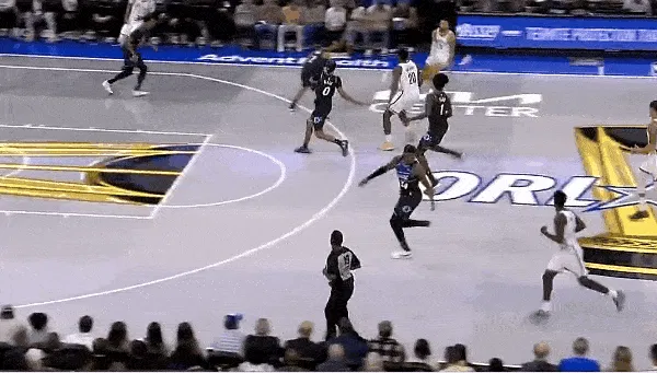 比賽的空中扣籃第一節,馬丁推進(jìn)反擊,接力擋拆送助攻順下的馬丁夏普完成空中接力扣籃。