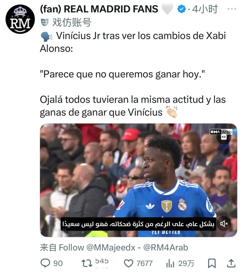維尼看見(jiàn)阿隆索換人后 :“看來(lái)我們今天不想贏(yíng)”