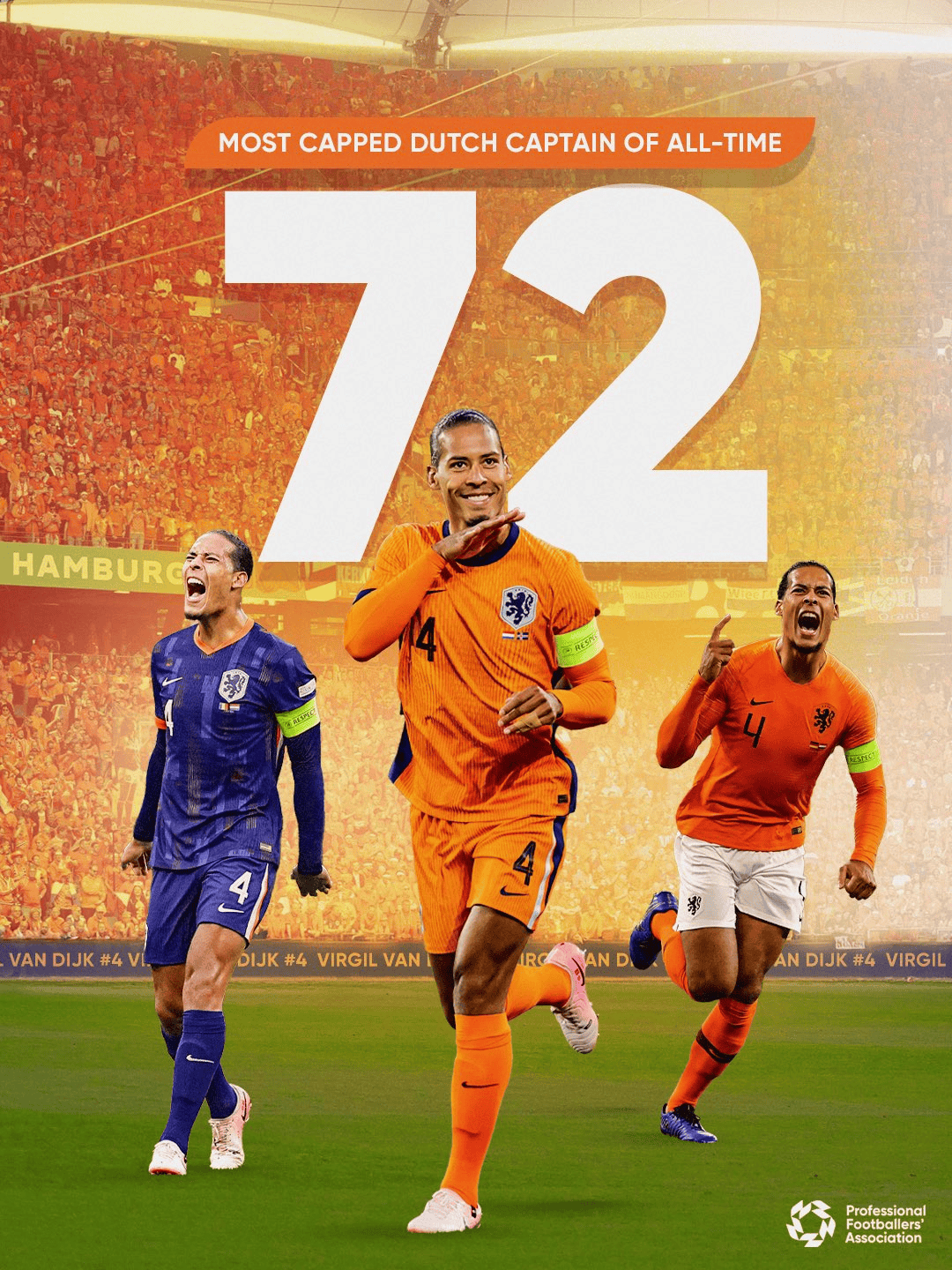 PFA官方為他發(fā)布了紀念海報,荷蘭祝賀他達成這一成就。隊長(cháng)
