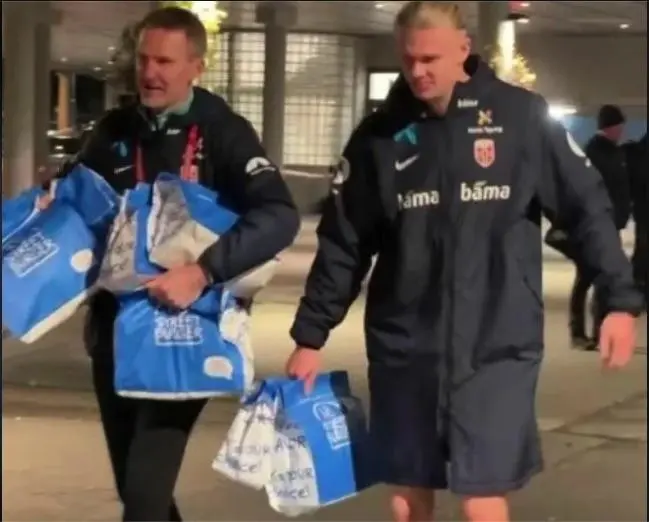 據悉,挪威隊4 -1戰勝愛(ài)沙尼亞隊的比賽結束后,哈蘭德依舊穿著(zhù)挪威隊的球衣,從送餐人員手中接過(guò)差不多70個(gè)芝士漢堡,拿回去分給正在興奮慶祝的隊友們。