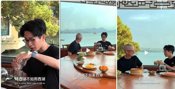 在此前的2025年3月26日,蘋(píng)果CEO庫克與何同學(xué)在西湖邊一家中餐館喝茶聊天,吃中式點(diǎn)心,背后就是景色優(yōu)美的西子湖畔。品茶過(guò)程中,何同學(xué)對庫克輸出了一番“土味情話(huà)”,“晴西湖不如雨西湖,雨西湖不如霧西湖,霧西湖不如你來(lái)到西湖?!币脦炜税l(fā)笑。結束后何同學(xué)還給庫克贈送了自己用記憶金屬精心制作的一盆花。網(wǎng)友認為此事件與網(wǎng)約車(chē)事件形成鮮明對比。何同學(xué)針對此事件也并未做出公開(kāi)道歉,此次“網(wǎng)約車(chē)事件”讓何同學(xué)以及其公司都充斥著(zhù)負面輿論。