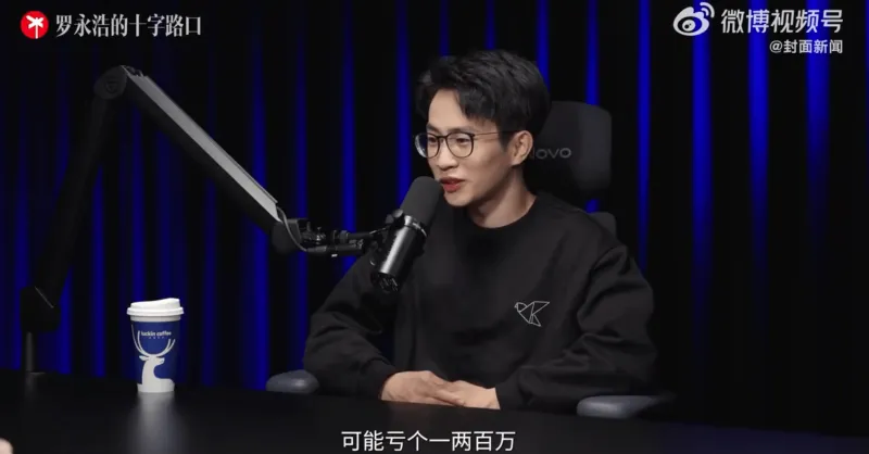 在視頻中羅永浩問(wèn)到何同學(xué)“現在公司規模、盈利是一個(gè)什么狀況”并表示不方便也可以選擇不回答,何同學(xué)坦然表示“包括自己在內一共是32個(gè)人”,對于盈利情況回答為“今年可能虧了個(gè)一兩百萬(wàn),當然今年虧錢(qián)主要原因是今年我發(fā)了一條微博影響比較大”。