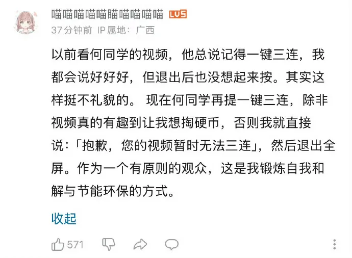 網(wǎng)友指出何同學(xué)常在視頻中呼吁粉絲“一鍵三連”,卻對司機同類(lèi)請求采取苛刻態(tài)度,車(chē)事被批“對上迎合、對下刻薄”。司機好評率直接影響平臺派單量和收入(行業(yè)數據顯示好評率每降1%,接單量可能減少8-12%),何同學(xué)被指忽視底層勞動(dòng)者生存壓力。大量用戶(hù)在何同學(xué)視頻評論區刷屏“抱歉,您的視頻暫時(shí)無(wú)法三連”。
