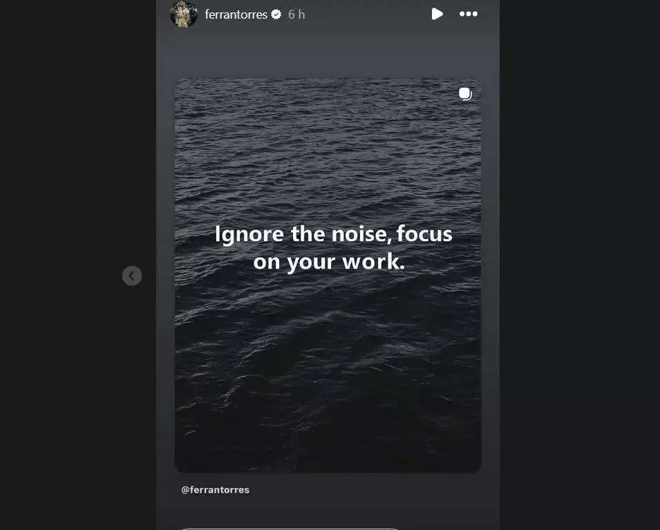 虎撲11月11日訊 費蘭-托雷斯在他的Instagram賬號上發(fā)布了一條動(dòng)態(tài),傳達了一個(gè)明確的信息:"忽略噪音,專(zhuān)注于你的工作"。這句話(huà)簡(jiǎn)短但意味深長(cháng),許多人將其解讀為是對圍繞他的批評或評論進(jìn)行的回應。