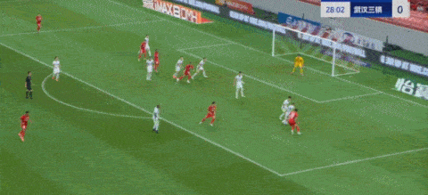 劉若釩禁區內擺脫過(guò)人,起腳兜射稍稍偏出