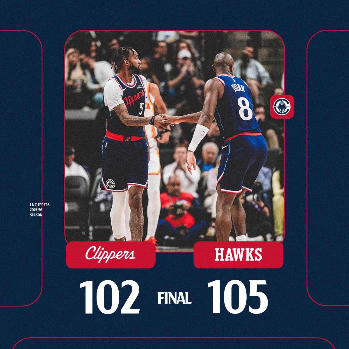 虎撲11月11日訊 NBA常規賽,快船主場(chǎng)102-105不敵老鷹。船社場(chǎng)失