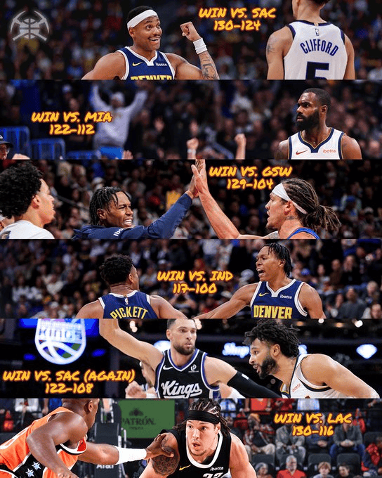 [流言板]掘金官方發(fā)布六連勝期間比分海報,場(chǎng)均凈勝分為14.3分