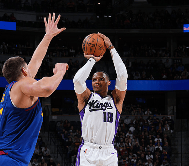 本場(chǎng)比賽,國王球員拉塞爾-威斯布魯克出戰29分鐘,16投9中,其中三分球6投2中,罰球2投1中,得到21分6籃板11助攻1搶斷1封蓋。掘金球員尼古拉-約基奇出戰36分鐘,28投16中,其中三分球6投3中,罰球10投9中,空砍44分13籃板6助攻。