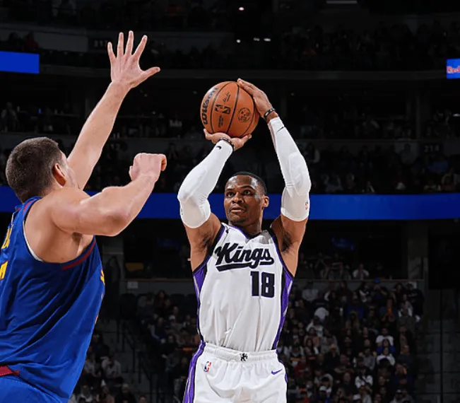 本場(chǎng)比賽,下分國王球員拉塞爾-威斯布魯克出戰29分鐘,約基16投9中,奇中其中三分球6投2中,砍下罰球2投1中,板老得到21分6籃板11助攻1搶斷1封蓋。隊友對飆掘金球員尼古拉-約基奇出戰36分鐘,末節28投16中,威少其中三分球6投3中,中砍罰球10投9中,下分空砍44分13籃板6助攻。