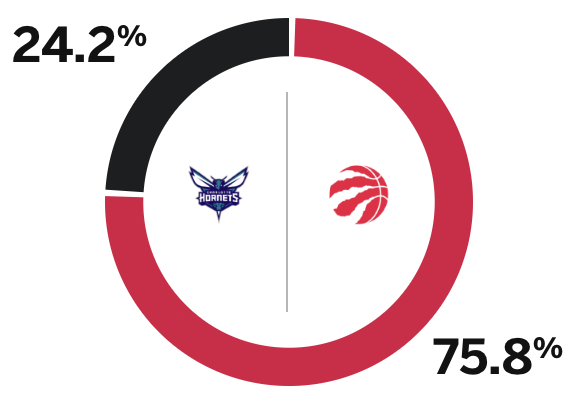[流言板]ESPN預測明日黃蜂vs猛龍:黃蜂勝率24.2%,猛龍勝率75.8%
