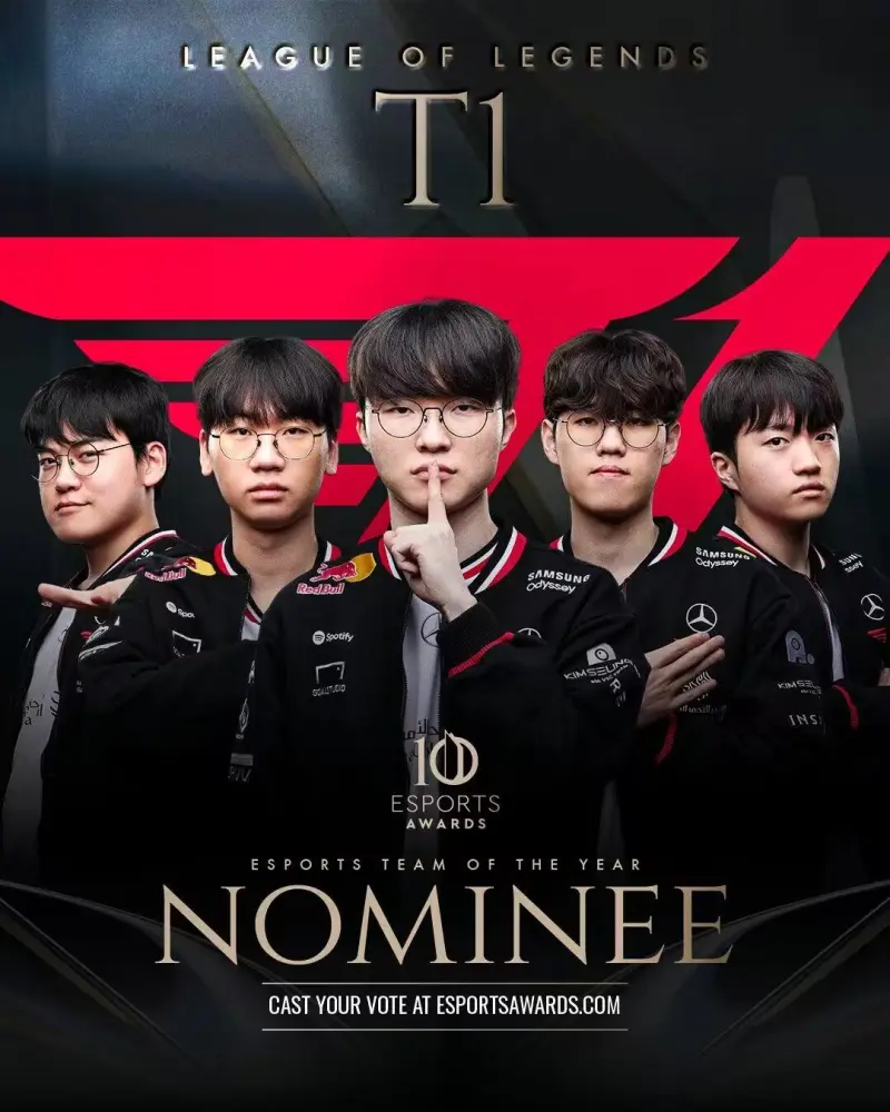虎撲11月11日訊 ?國外電競大獎Esports Awards今晨宣布新增提名T1英雄聯(lián)盟分部年度最佳戰隊,新增提名T1下路選手Gumayusi年度最佳PC端電競選手。