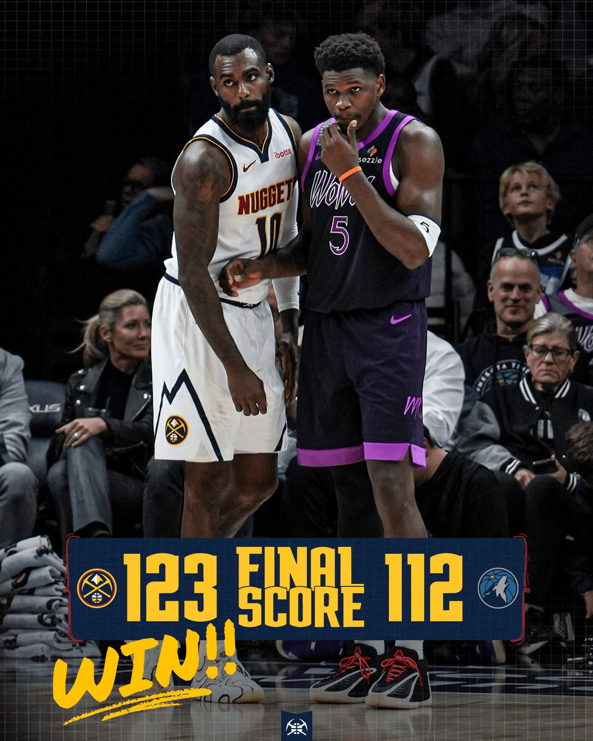 虎撲11月16日訊 今日NBA常規賽,掘金123-112戰勝森林狼。金面