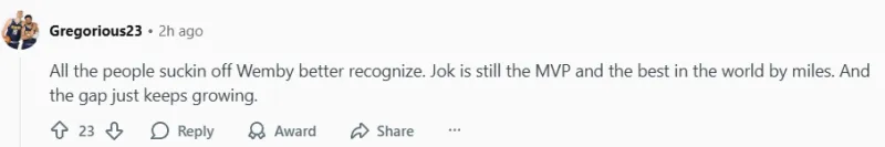 -(23贊)所有巴結文班的人最好認清事實(shí)。約基奇仍然是MVP,是世界上最好的球員。而且差距還在不斷拉大。