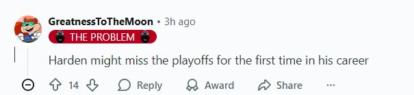 -(14贊)哈登可能職業(yè)生涯首次缺席季后賽