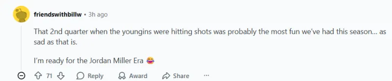 -(71贊)第二節年輕人的投籃命中率可能是本賽季我們打得最開(kāi)心的一節......雖然這很可悲。