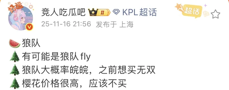 狼隊的瓜:Fly回歸,櫻花太貴不買(mǎi),皖皖打野大概率皖皖