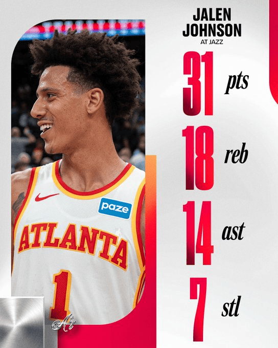 [流言板]夸張!板夸老鷹官方曬杰倫-約翰遜海報:歷史唯一達成此數據球員由虎撲籃球資訊 發(fā)表在籃球資訊 https://bbs.hupu.com/502