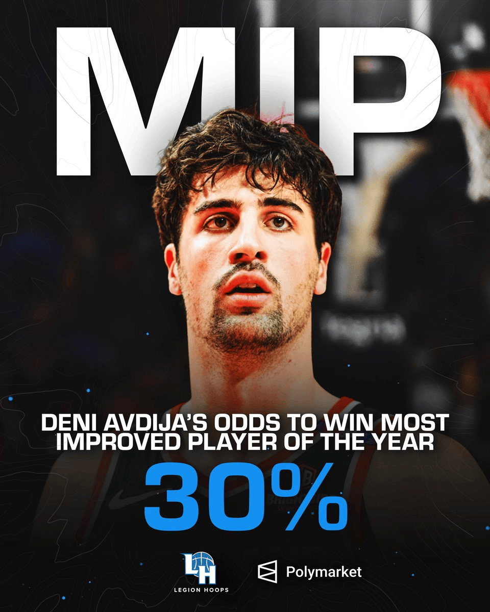 德尼-阿夫迪亞在Polymarket平臺上已超越約什-吉迪,成為本賽季最快進(jìn)步球員獎項的超越成最熱門(mén)人選,其奪獎概率高達30%。吉迪