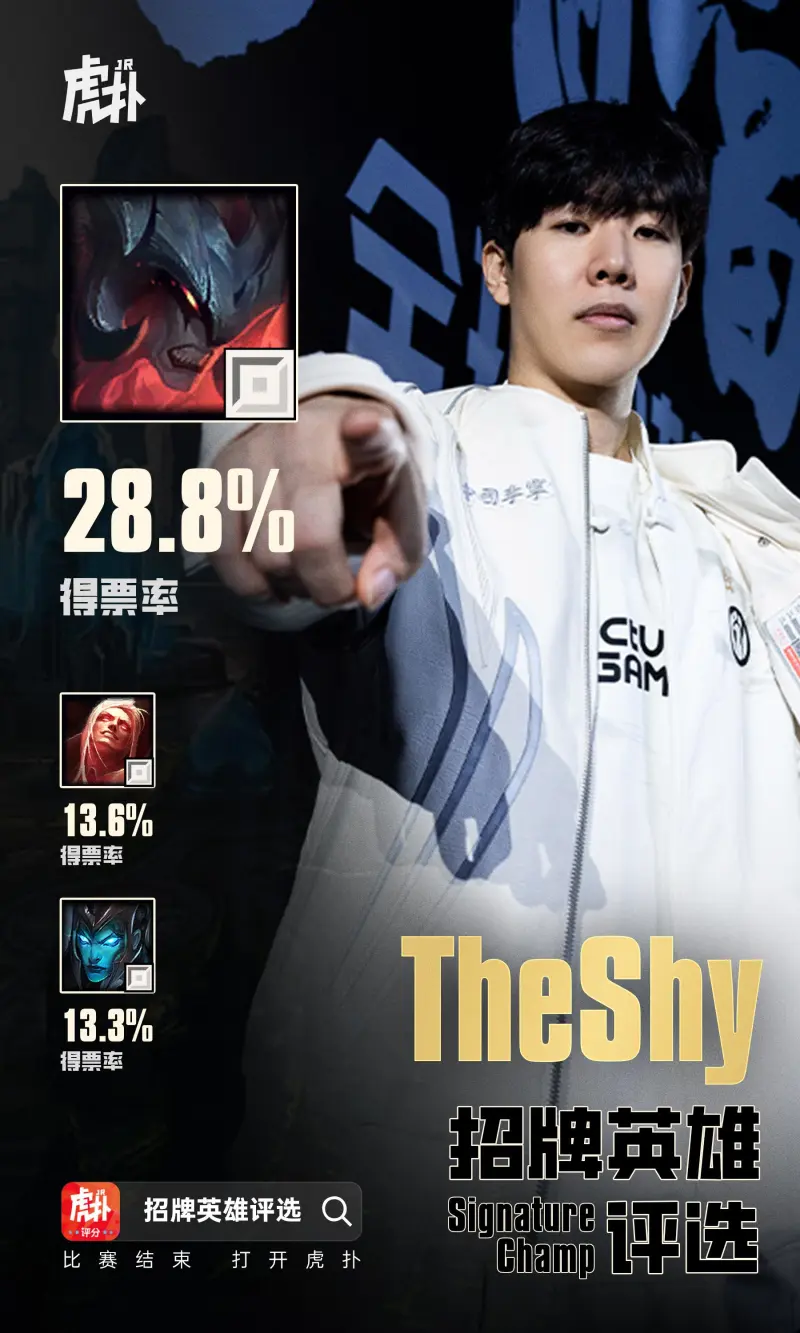 虎撲11月12日訊 經(jīng)過(guò)JRs昨日的評選,劍魔以39.6%得票率當選The招牌Shy招牌英雄。