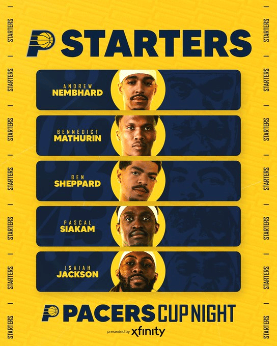賽前,步行者更新官方社媒,公布了本場(chǎng)比賽首發(fā)陣容。