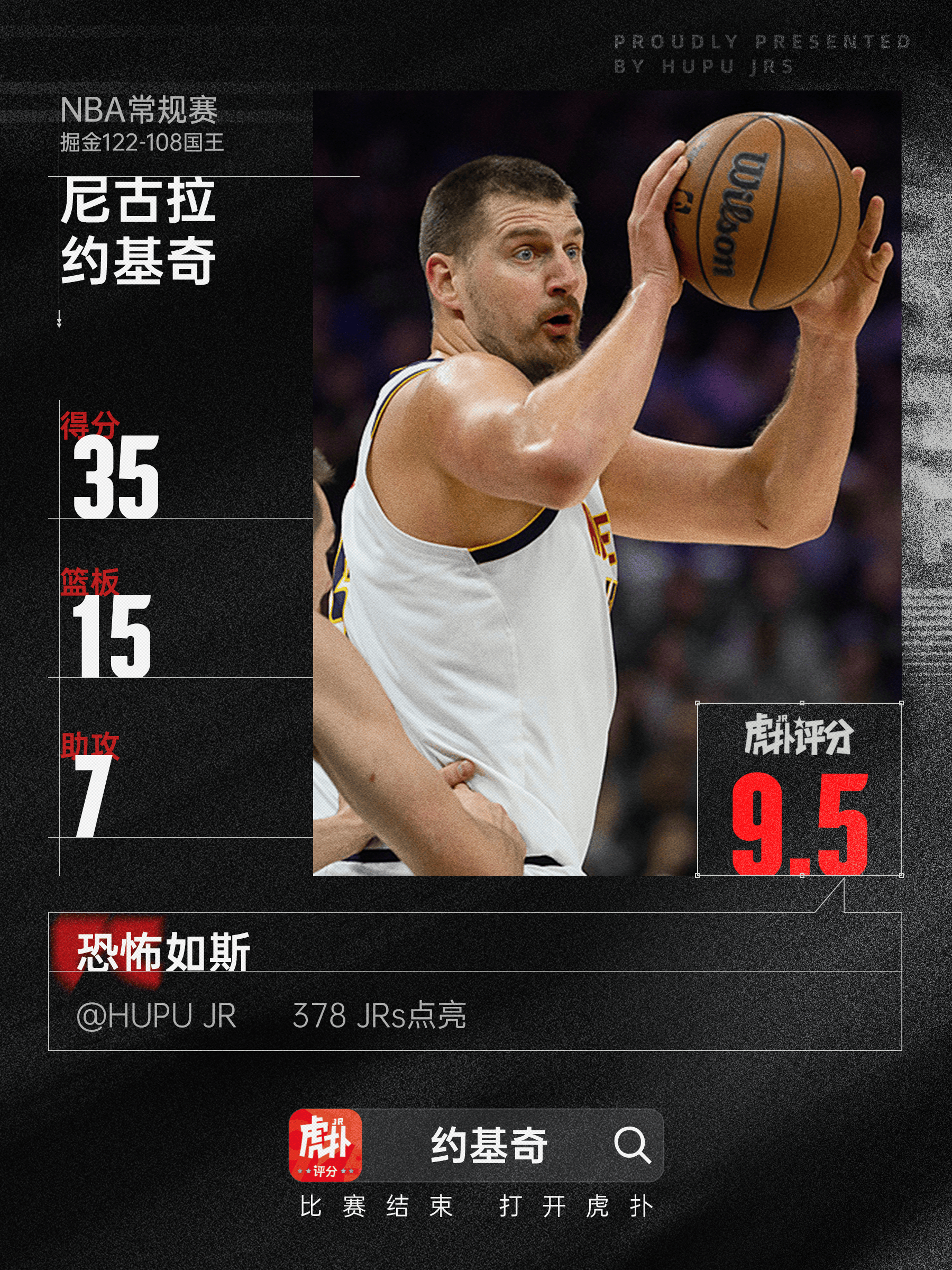 約基奇全場(chǎng)19投16中,約基砍下35分15籃板7助攻2搶斷由虎撲籃球資訊 發(fā)表在籃球資訊 https://bbs.hupu.com/502