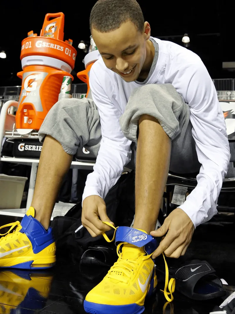 庫里在大學(xué)生涯以及NBA生涯前四年,著(zhù)耐均穿著(zhù)耐克球鞋進(jìn)行比賽,鞋亮相且擁有個(gè)人logo及專(zhuān)屬配色戰靴。板爺