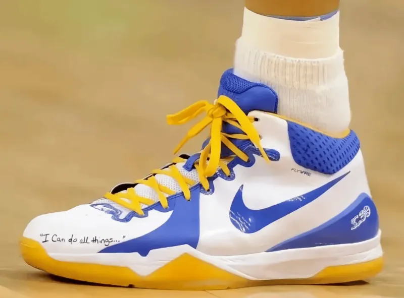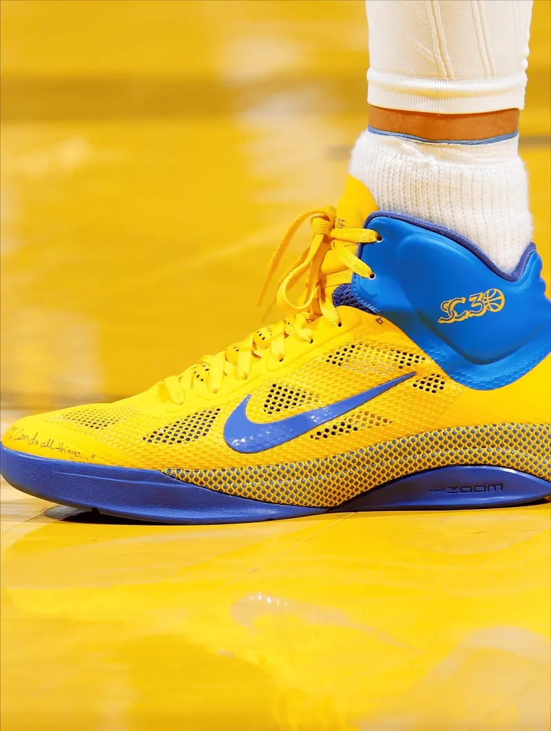 庫里在大學(xué)生涯以及NBA生涯前四年,均穿著(zhù)耐克球鞋進(jìn)行比賽,且擁有個(gè)人logo及專(zhuān)屬配色戰靴。