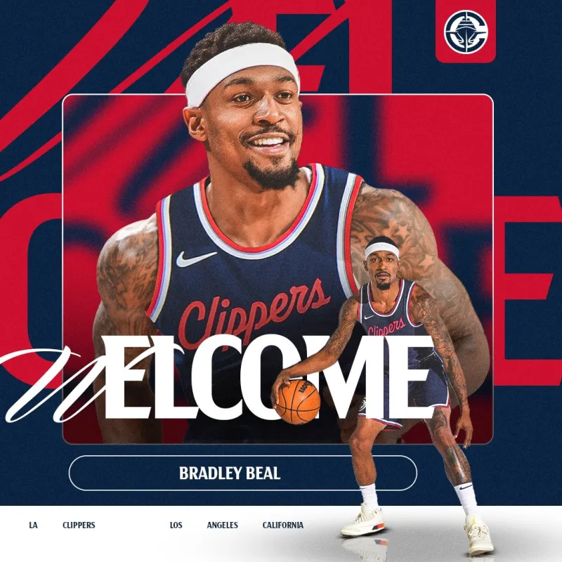 虎撲07月19日訊 快船官方更新X,曬出一張球隊新援布拉德利-比爾的國度官方照片與球迷分享。