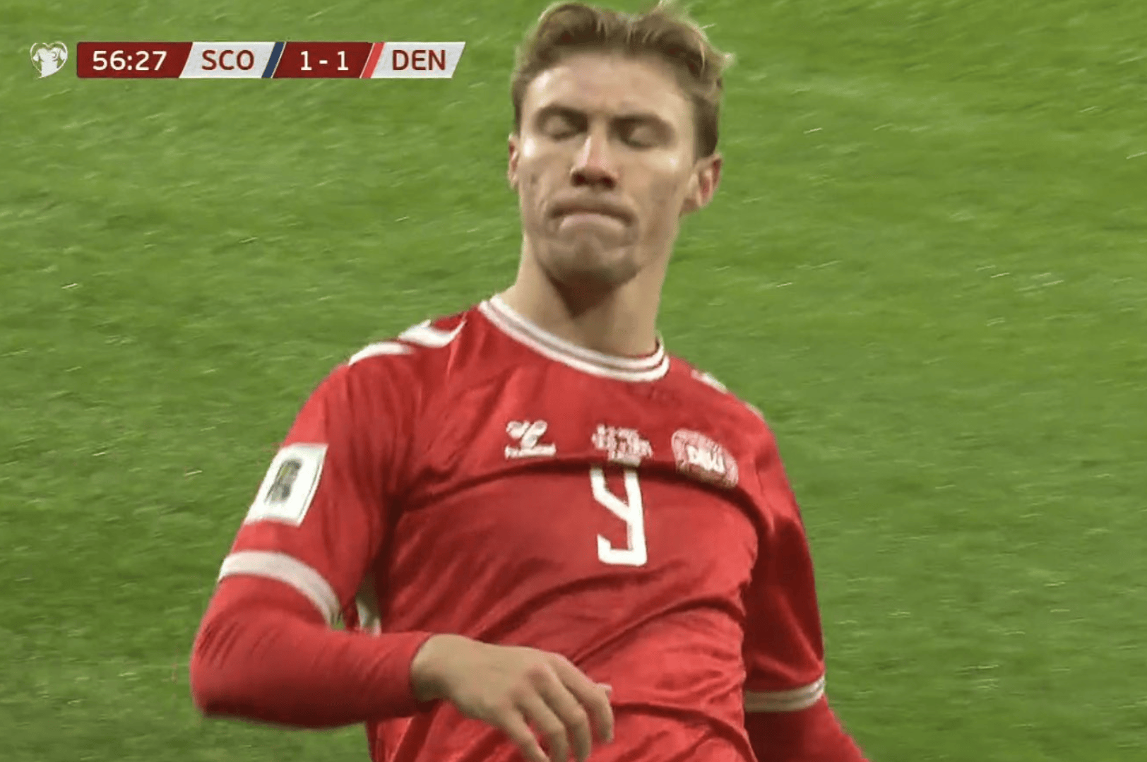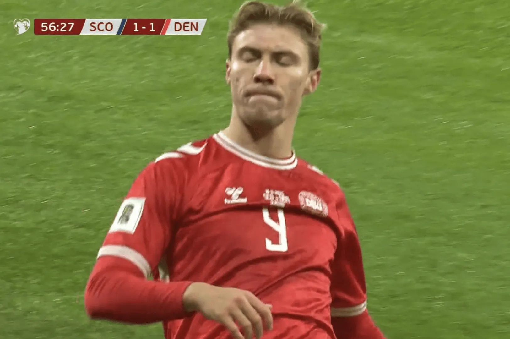 虎撲11月19日訊 世界杯歐洲區預選賽丹麥客場(chǎng)挑戰蘇格蘭的比賽正在進(jìn)行中,下半場(chǎng)丹麥創(chuàng )造了點(diǎn)球并由霍伊倫主罰命中。丹麥1