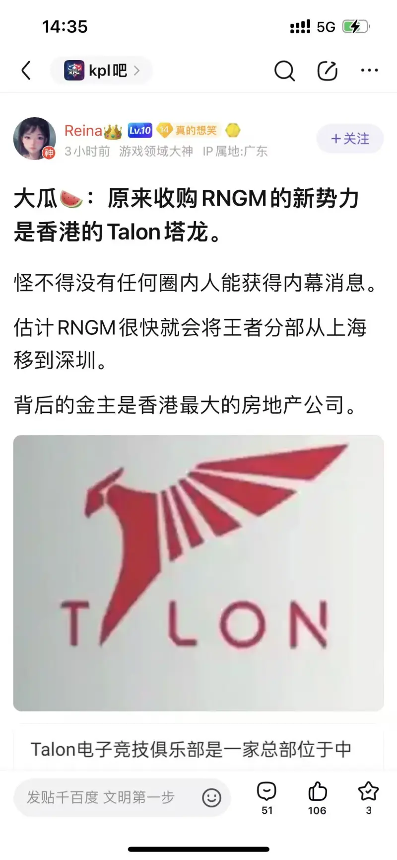 [JR熱議]瓜主爆料:RNG.M新金主為T(mén)alon,熱議香港最大的瓜主港最