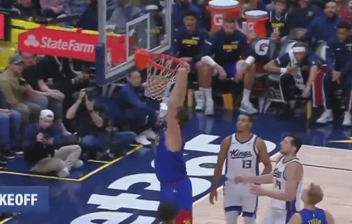 虎撲11月23日訊 NBA常規賽,掘金對陣國王的松轉身過(guò)斯墊手掛比賽正在進(jìn)行中。