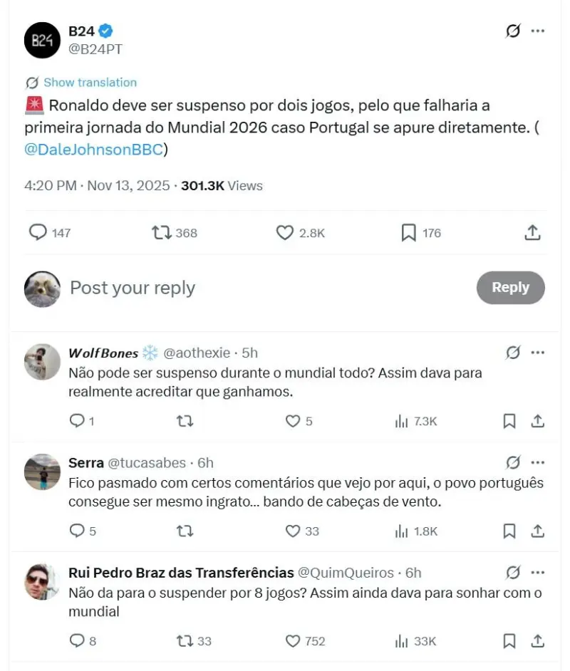 有葡萄牙球迷呼吁對羅哥禁賽8場(chǎng),他們就是這么對待功勛的?