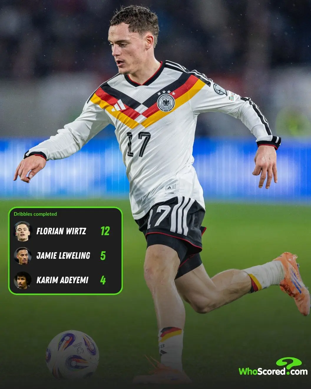 賽后,據創(chuàng )WhoScored對維爾茨在本屆世預賽中的造機整體表現進(jìn)行了統計,他在多項關(guān)鍵數據上均排在德國隊第一: