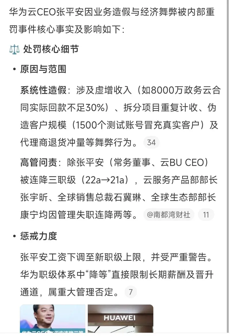 2025年10月,多名華為內部通報云業(yè)務(wù)造假與經(jīng)濟舞弊處理結果,高管常務(wù)董事、造假華為云CEO張平安因管理責任被連降三等,舞弊另有3名高管連降兩等。通報2024年華為云虛增營(yíng)收近300億元,多名這家企業(yè)一直都是高管這樣嗎?真是應了大嘴哥那句話(huà)。