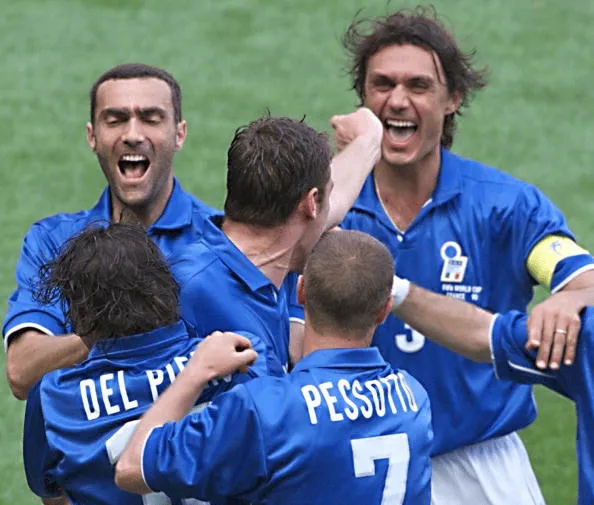 那場(chǎng)比賽意大利的陣容:帕柳卡/科斯塔庫塔、卡納瓦羅、內斯塔、馬爾蒂尼/莫雷諾、迪諾巴喬、迪比亞吉奧、佩索托/皮耶羅、維埃里
