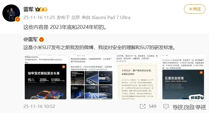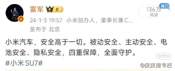雷軍真的雷軍怒了!別再跟風(fēng)黑他和小米汽車(chē)了!真的再跟由皮皮推專(zhuān)欄 發(fā)表在步行街主干道 https://bbs.hupu.com/topic-daily