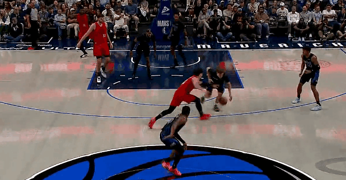 第一節比賽中,布蘭背傳布蘭登快攻吸引防守送背傳,登快弗拉格接球起飛雙手滑翔飛扣。攻吸格接