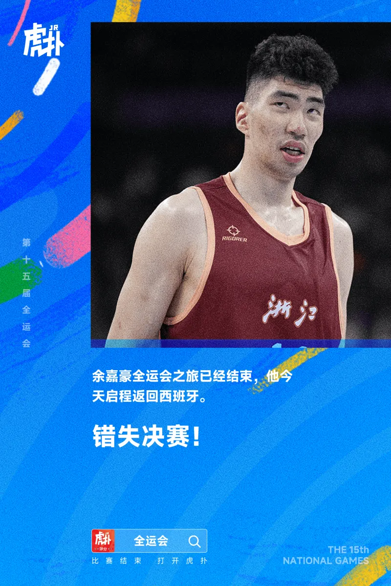 虎撲11月12日訊 今日,媒體人白曉籃社媒發(fā)文:余嘉豪全運會(huì )之旅已經(jīng)結束,體人他今天啟程返回西班牙。士強賽