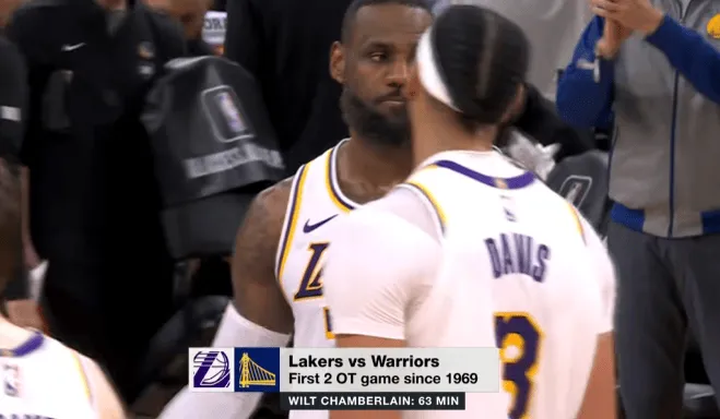 本場(chǎng)比賽,湖勇鏖戰雙加時(shí),是自1969年以來(lái),湖人勇士雙方首次戰至雙加時(shí)。
