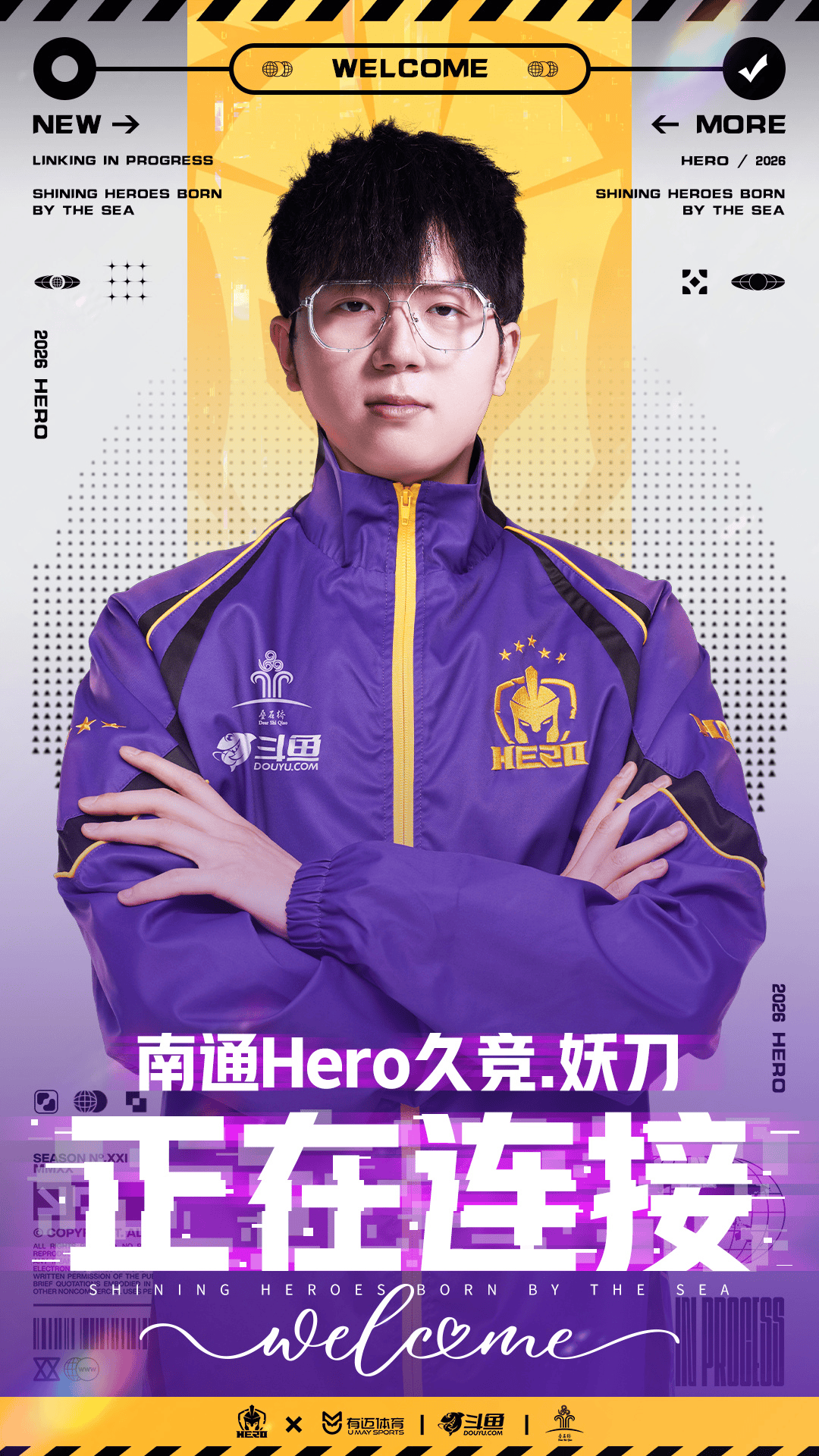 虎撲11月23日訊 南通Hero久競人員變動(dòng)公告:妖刀即日起正式加入Hero久競