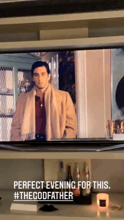 詹姆斯拍攝了房間電視上的姆斯美夜電影畫(huà)面,并寫(xiě)道:“今晚看這個(gè)真是曬自完美。#教父”